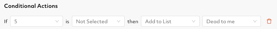 Conditional Actions is where you decide what should happen when someone answers a question in a certain way. Think of it like writing a little “if → then” rule: