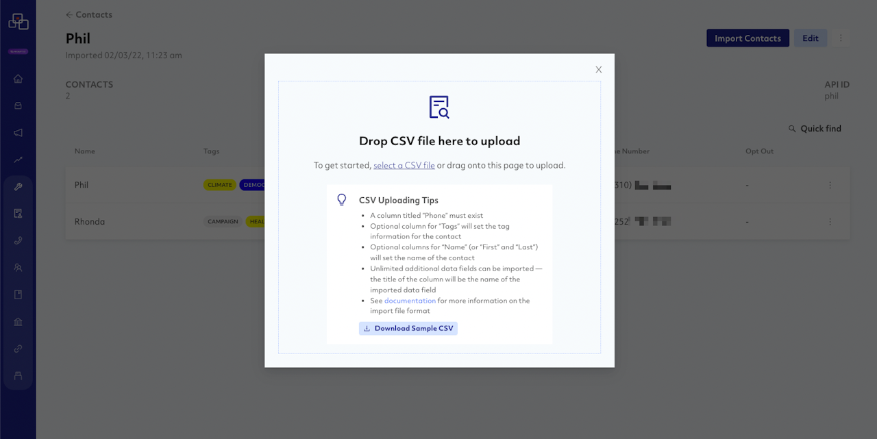 An option column titled "Tags" that will be a comma (or backslash) separated list of tags to be applied to each contact.