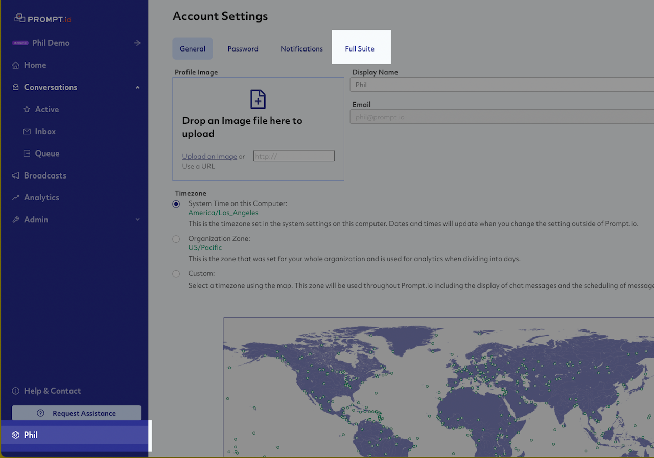 Click the Full Suite tab in the Account Settings tabs.