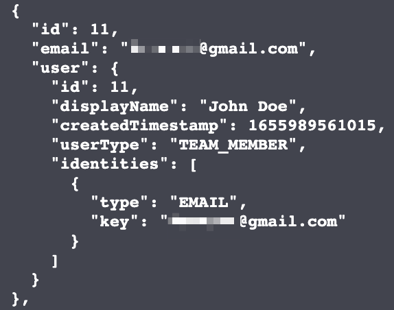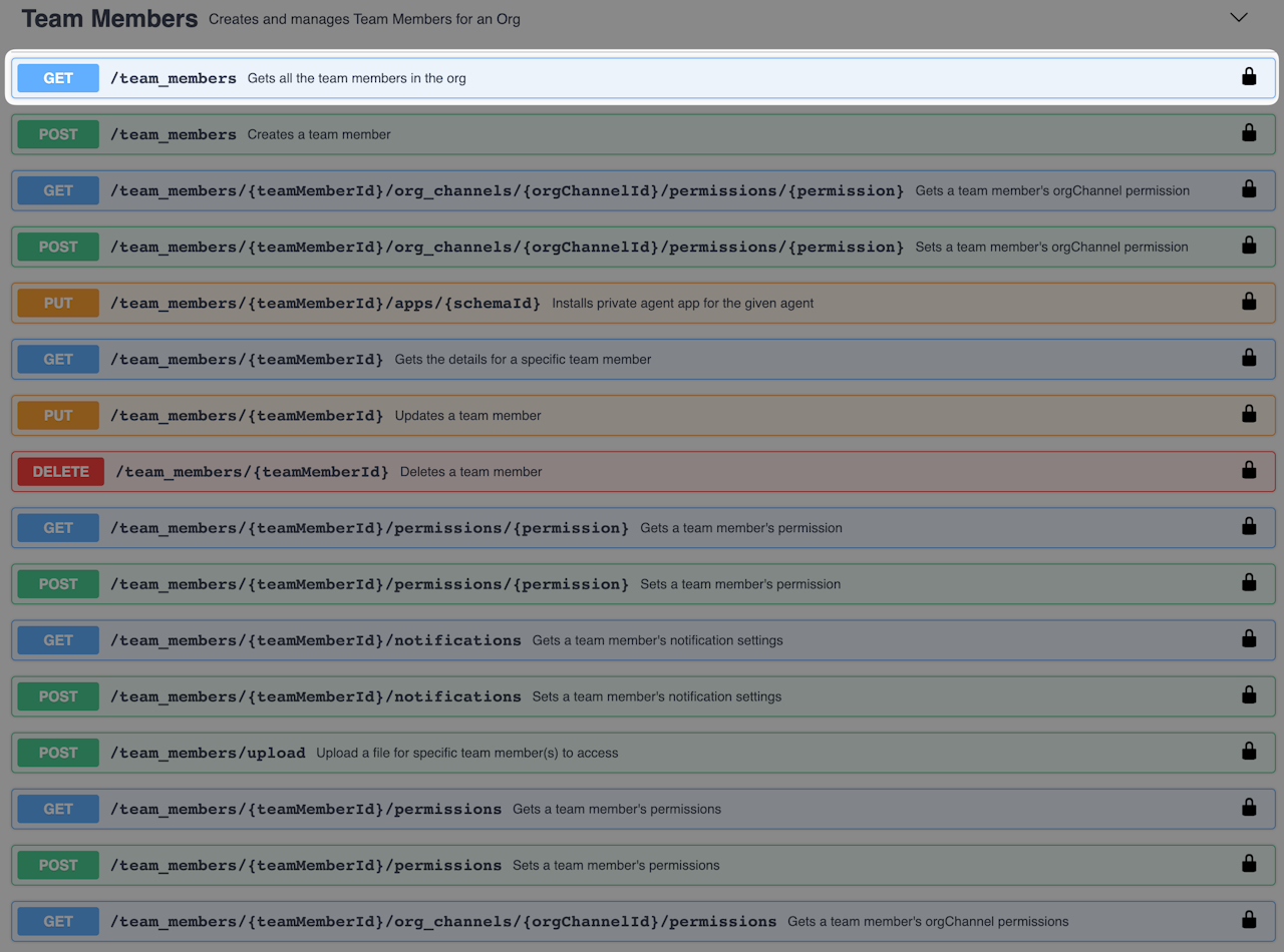The response body will default to JSON format. From there, you can access useful data, such as the teamMemberId number for each agent, which can be used to, say, automatically post whispers in every open conversation using the API.