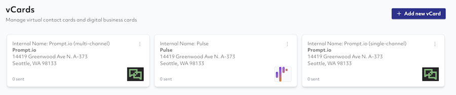 We’re excited to introduce vCards, a new feature in Prompt that lets you create and send digital contact cards directly from your account. vCards make it easy for people to save your organization’s information, recognize future messages, and keep conversations consistent, all while improving the deliverability and trustworthiness of your texts.